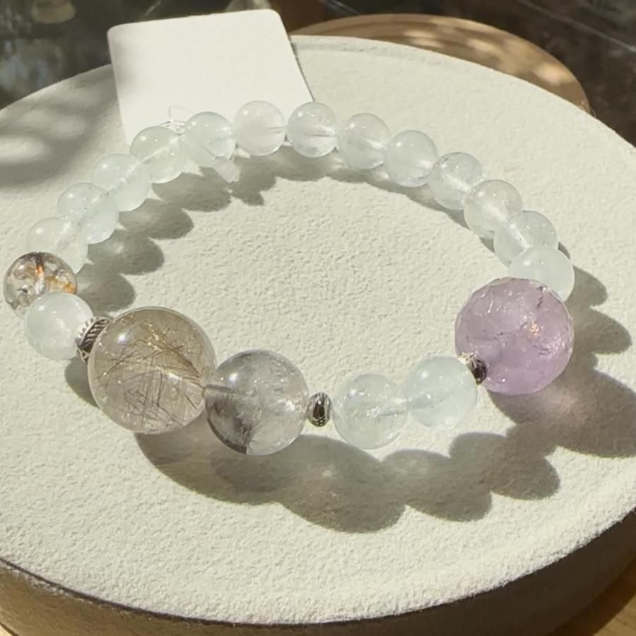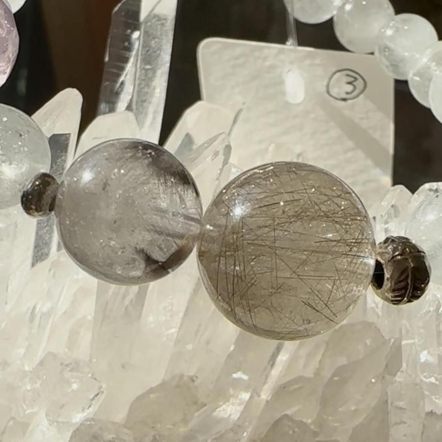 トパーズ&シルバールチルクォーツ&ハーキマークリスタル&セイクリッドセブン&プラチナクォーツ デザインブレスレット 【03】